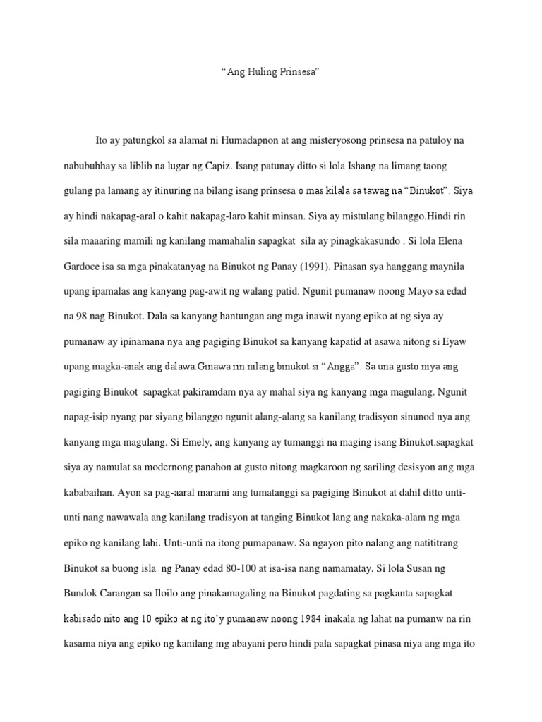 Bakit Huling Prinsesa and naging pamagat ng dokumentaryo. Before seeing the documentary of Huling Prinsesa Last Princess I was really excited because who knew that a 3rd world country like the Philippines would afford to have a princess. Maikling Buod ng Ibong Adarna.
