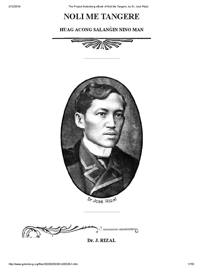 Yaring abang buhay na lantat dalita. Ngayon hindi dapat pagtakhan na proyekto ng pamilya ni Rizal ang pagsasaaklat sa salin ni Poblete. ISO-8859-1 START OF THIS PROJECT GUTENBERG EBOOK NOLI ME TANGERE Produced by.